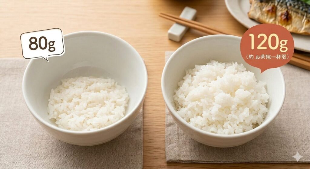 まずはこの量を120g〜150g、子供用のお茶碗一杯分まで段階的に増やしてください。