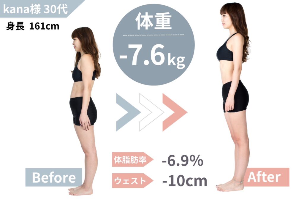 たった2ヶ月で、-7.6kg&-6.9%の体脂肪減を達成!リバウンドなしで理想の美ボディに。